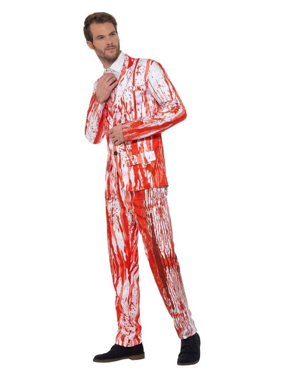 Für alle, die auch an Halloween und auf gruseligen Motto Feiern edel und dennoch angemessen gekleidet erscheinen wollen, haben wir mit unserem Blutspritzer Anzug mit Krawatte genau die richtige Kostümierung im Sortiment!