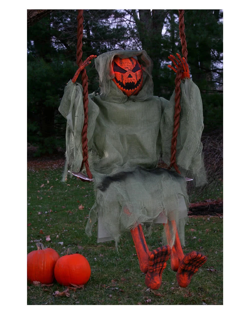 Der gruselige Kürbis Geist lässt es sich gut gehen auf seiner Schaukel und wartet nur darauf deine Party Gäste auf der nächsten Grusel Motto Party so richtig zu erschrecken. Hänge die Hängefigur einfach in einen Baum oder in dein Haus und warte auf die Reaktion deiner Freunde.